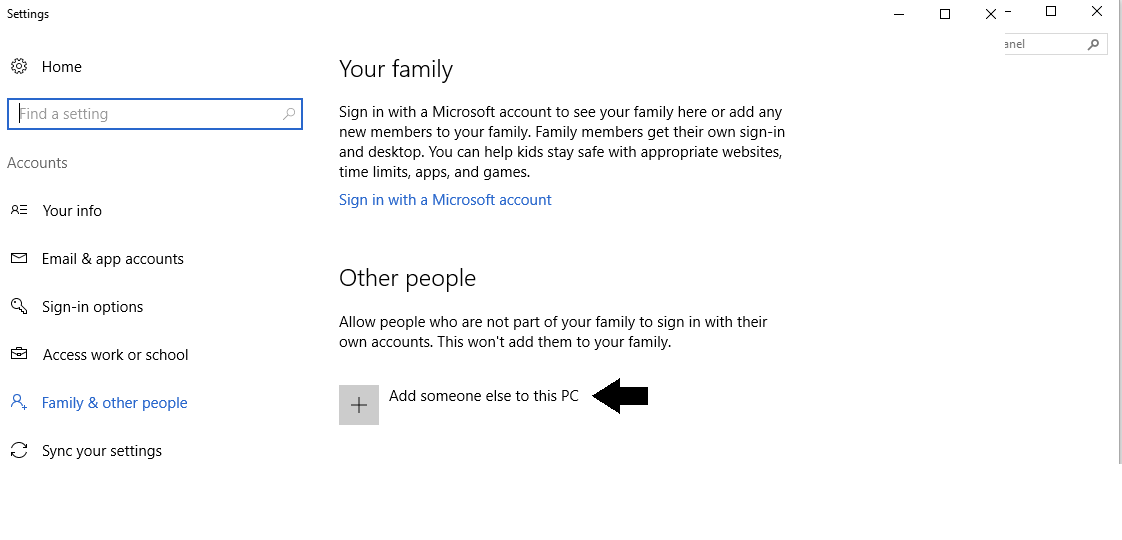 By clicking on “Add a new user in PC settings”, you will be taken to this screen: