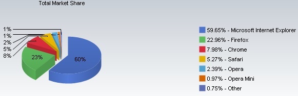 All statistics are dependent on collection methods, but by looking at several we get an idea of the overall trends. This one from 3Schools shows a .5% rise in IE market share. That’s the first increase they’ve shown for IE in about a year and a half.