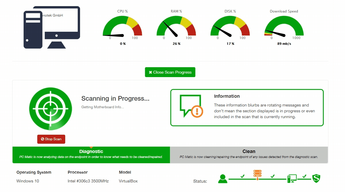 With the new scan progress section you’ll have a great way to monitor a manual scan that you just initiated for an individual device, or check on a scheduled scan to see how close it is to wrapping up and completing the scan process. After completion, click on the Last Scan button in the Scan section to view the report for that recent scan.