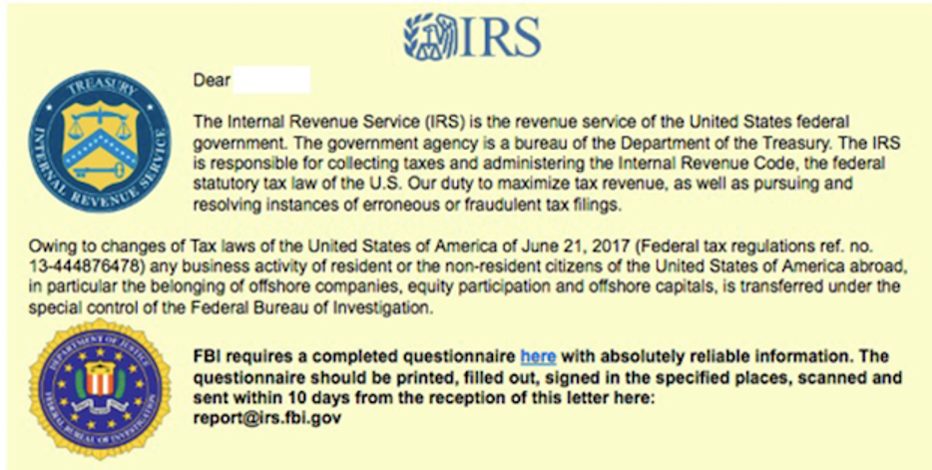 If you have already clicked to download the “questionnaire”, do not pay the ransom demand. Paying the ransom is never a guarantee you will get your data back, and it only reinforces the criminal behavior. Instead, immediately report any ransomware attempt or attack to the FBI at the Internet Crime Complaint Center, www.IC3.gov. You should also forward any IRS-themed scams to [email protected].