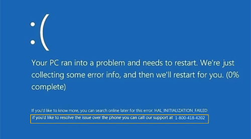 Please stay safe, and always remember–Microsoft will NEVER have a support number in any BSoD screen!!
