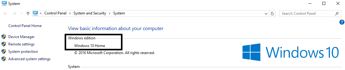 This will bring up the screen below, which displays your current operating system.