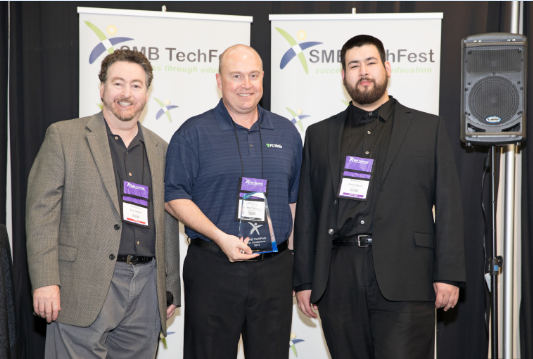 Mike Sexton, Senior VP of Marketing and Sales accepting the SMB TechFest Best Solution Award.