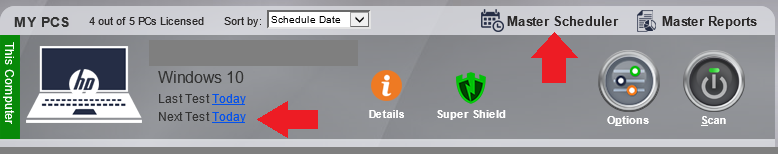- Then click on the hyperlink next to “Next Test”. If you would like to receive emails for all of the devices under your license key – you’ll need to select “Master Scheduler”, then click “Master Scheduler” again.
