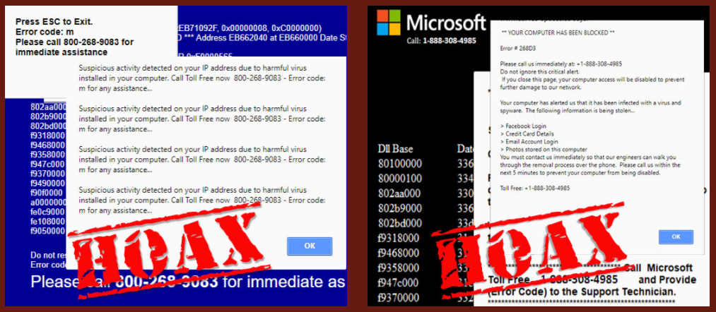 About a month ago, PC Pitstop created a public service announcement to the general public regarding the infinite alert hoax. This is a common fraudulent tech support alert that informs PC users they need to contact a support technician to “fix” their PC. Examples of the alerts can be seen below: