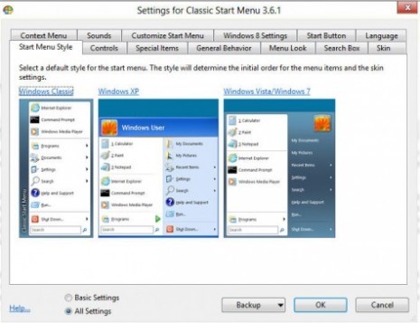 Classic Shell gives you several START MENUS, from Classic to Windows7. After installation you can always access the Options for Classic Shell from the START MENU that it just installed. There are so many options for customization that it will make your head spin. I like to put the “Run” function in the START MENU, along with “Programs (Add/Remove)” and a few others.