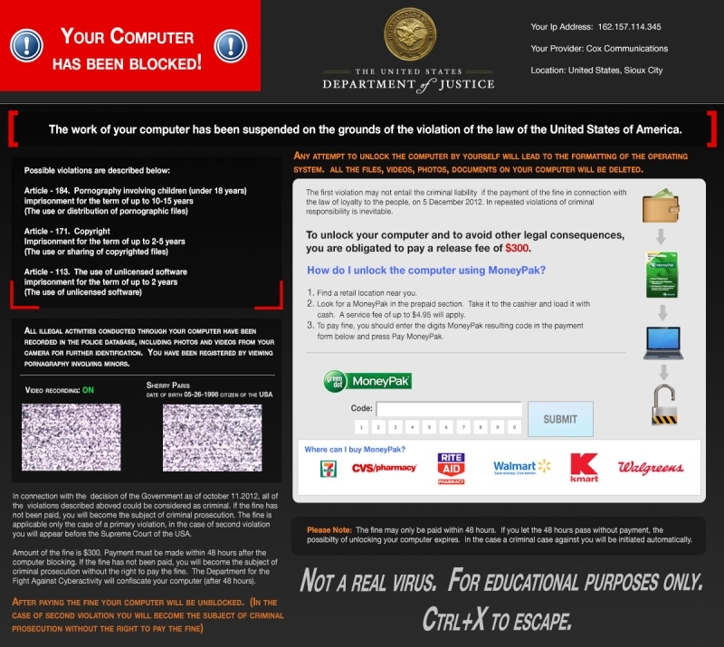 The virus carefully details the laws that were broken focusing on child pornography and illegal copyrighted downloads. This is ingenious because most people are embarrassed to have these violations alleged against them even if they are not true. I tried to find these articles and they don’t exist. Of course, a victim would struggle to figure this out since they no longer have access to the internet.