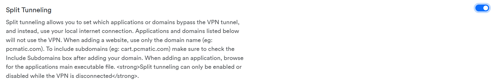 Paste it into the Domains tab in the Split Tunneling section and click Add Domain.