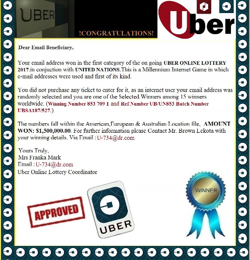 Uber Online Lottery Scam