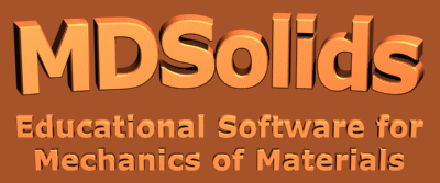 MDSolids is software for topics taught in the Mechanics of Materials course (also commonly called Strength of Materials or Mechanics of Deformable Solids). This course is typically a part of civil, mechanical, and aerospace engineering programs and a number of related programs. The software also features a number of modules for topics taught in the Statics course. MDSolids consists of routines for beams and flexural members, torsional assemblies, axial assemblies, trusses, columns, pressure vessels, section properties, Mohr's circle analysis (including stress transformations and strain transformations), and many more topics.