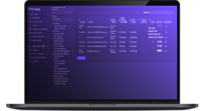 Manage VPN access right from your PC Matic Pro dashboard — simple setup, zero technical headaches.